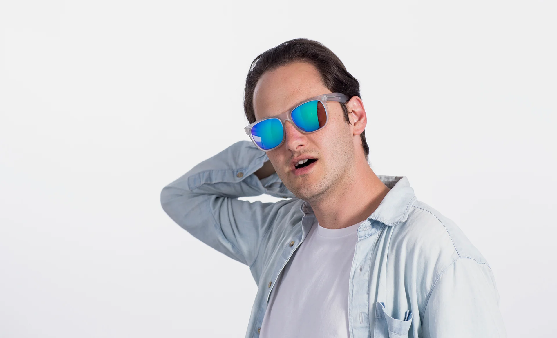 Designed for Spring 2009 collection, Classic Crystal Flash Matte sports a unique combination of refined materials and playful finishings. A transparent, signature crystal acetate, was rendered in a particular matte version – giving this model a soft and textured appeal – matched with a colorful lens and ice-cold metal hardware. Classic Crystal Flash Matte sports blue mirrored lenses by ZEISS.
